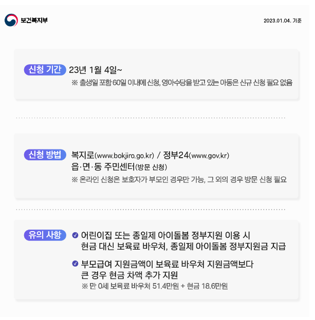 2022년 12월 영아수당을 받고 있었다면 부모급여를 다시 신청할 필요는 없습니다.