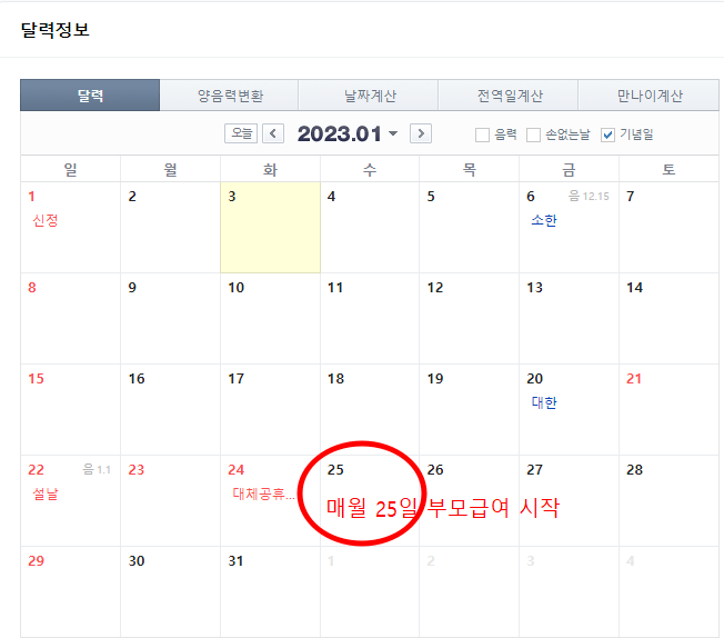 2023년 1월 25일 부터 신청한 계좌로 매월 25일 입금됩니다. 신청이 늦어져서 신청한 달 25일에 받지 못한 경우 다음 달 25일에 미지급분과 같이 부모급여 지급받게 됩니다.