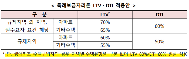 - LTV - 최대 70% (생애최초 주택구입자 80%)