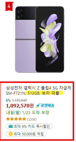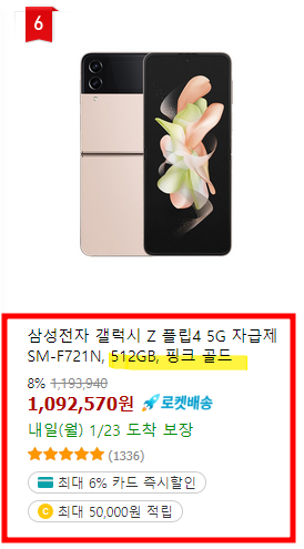 쿠팡 사이트에서는 256GB 1,053,910원, 512GB 1,092,570원에 판매 중이며 추가로 최대 6% 카드 즉시 할인 혜택을 제공하고 있습니다. 삼성전자 공식 홈페이지에서 제공하는 적립금 혜택과 비교하여 저렴한 곳에서 구입하시면 되겠습니다.
