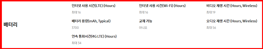 2. 4nm 프로세서로 가장 빠른칩이 내장되어있어 하루종일 사용하더라도 매끄럽게 이어질 수 있도록 업그레이드된 프로세서를 경험할 수 있습니다. 3. 배터리 용량은 3700mAh 이며, 전작대비 12% 증가했습니다. 인터넷 사용 최대16시간, 비디오 재생 시간 최대 19시간, 연속 통화 최대34시간 이용이 가능할 정도의 용량을 자랑합니다.