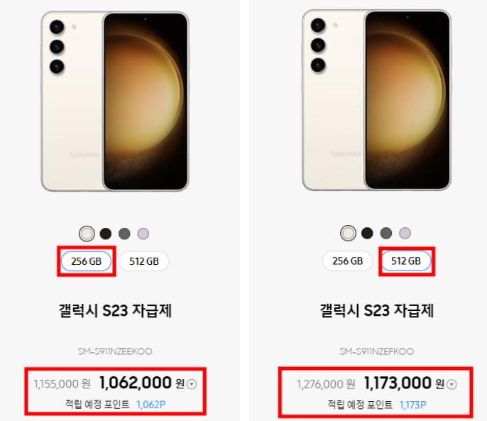■ 갤럭시 s23 - 256GB 1,155,000원
